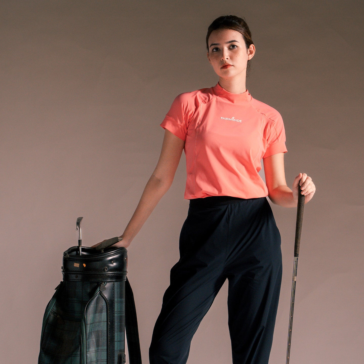 Add a playful twist to your golf attire with this premium Italian-made tee. Crafted from a luxurious fabric blend, its sleek mock neck design exudes sophistication while offering comfort, coverage, and protection. Perfectly versatile, it transitions effortlessly from course to clubhouse, blending performance with casual elegance.