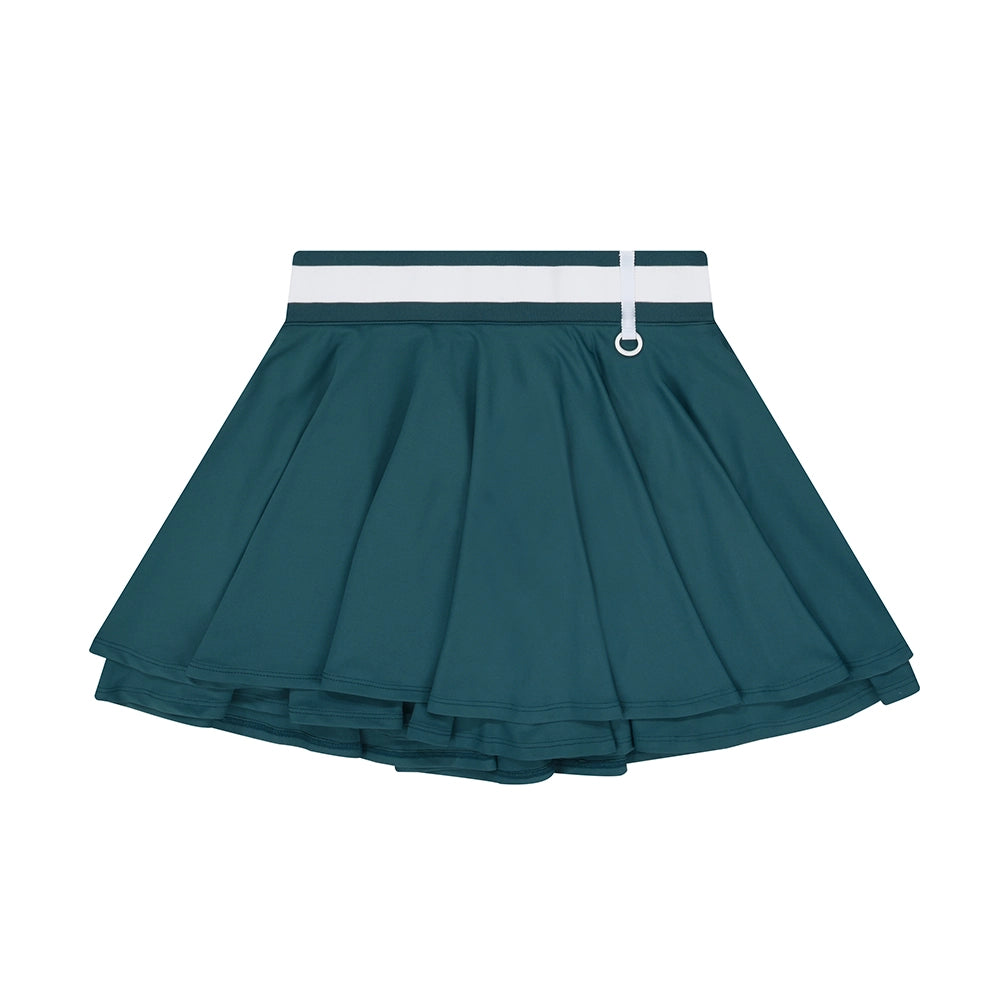 A knit rib waistband enhances stability and wearability, while the built-in spandex mesh undershorts deliver breathable comfort. Functional details include an O-ring at the waistband for accessory storage, keeping your look sharp and practical. For a coordinated K-golf style, pair it with the Knit Collar Sleeveless Top.