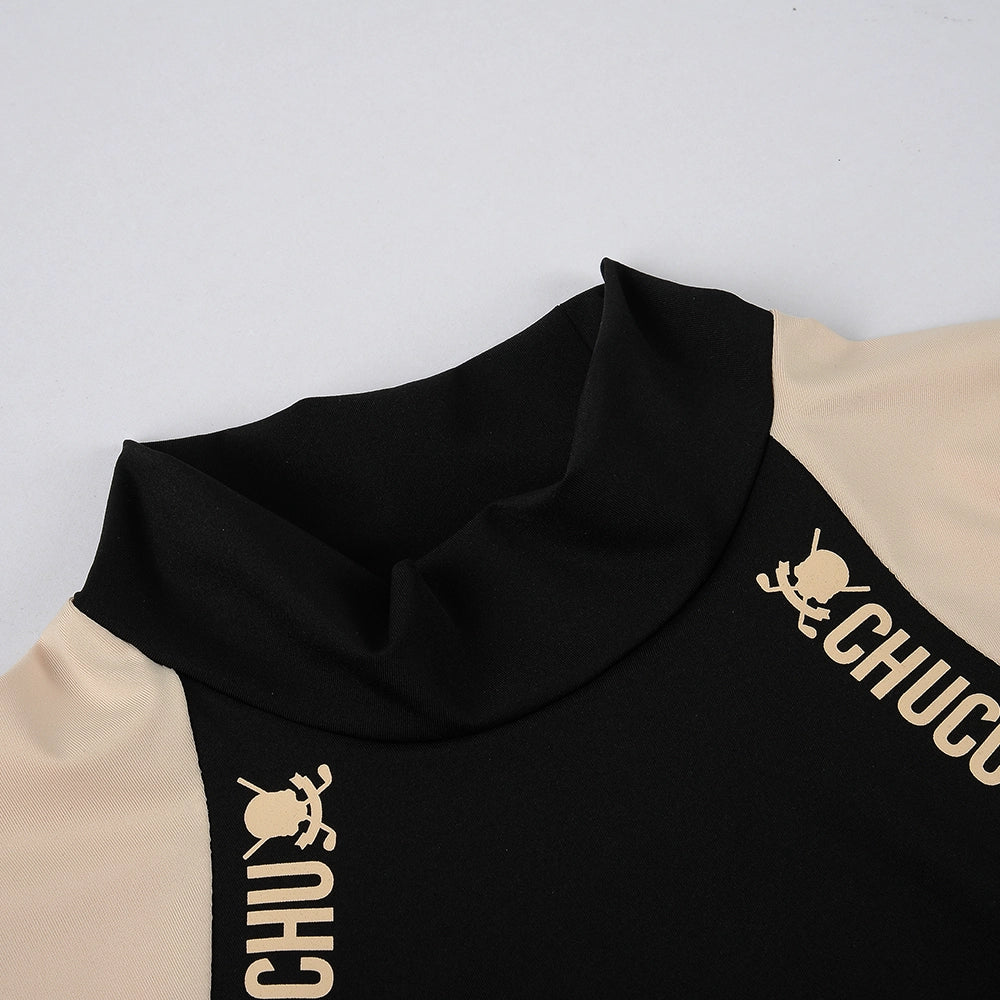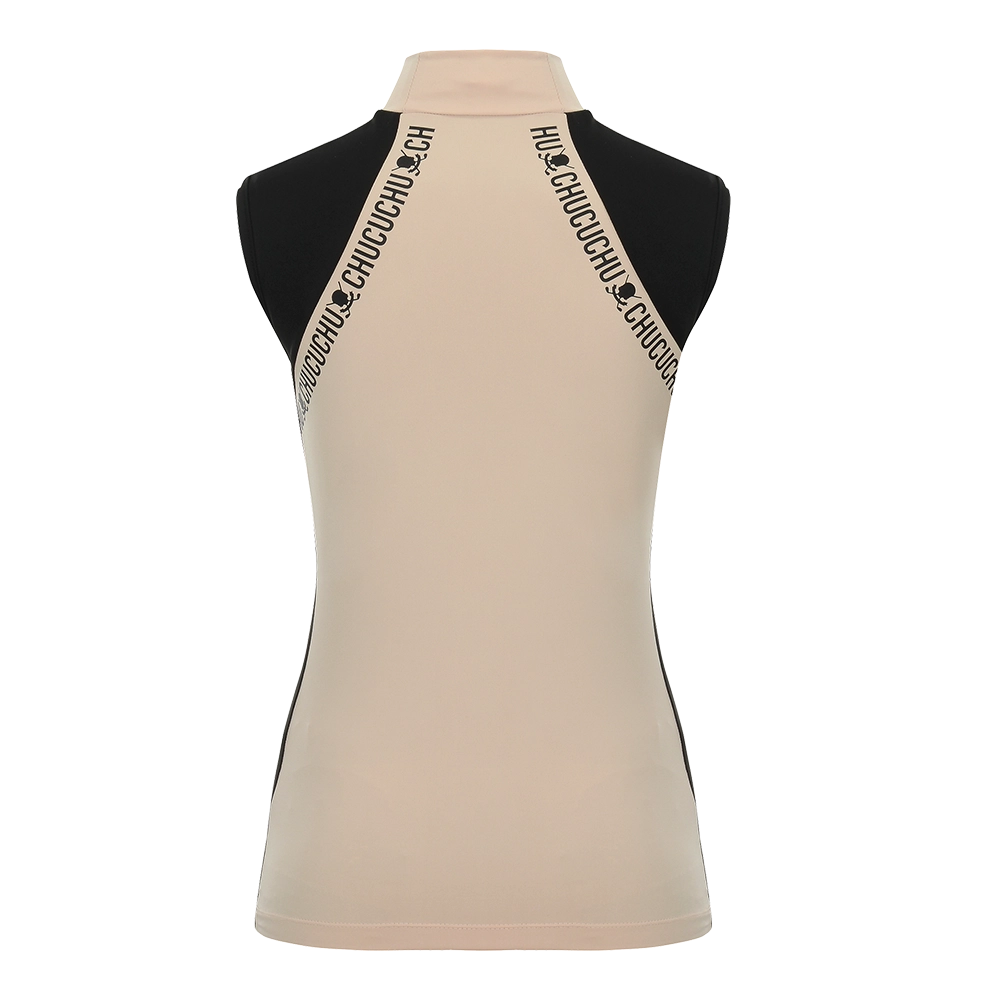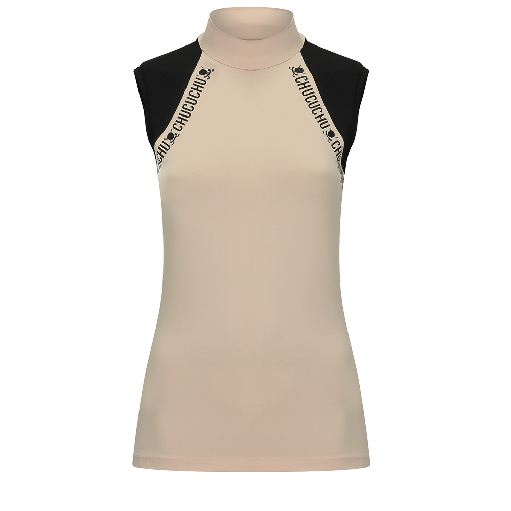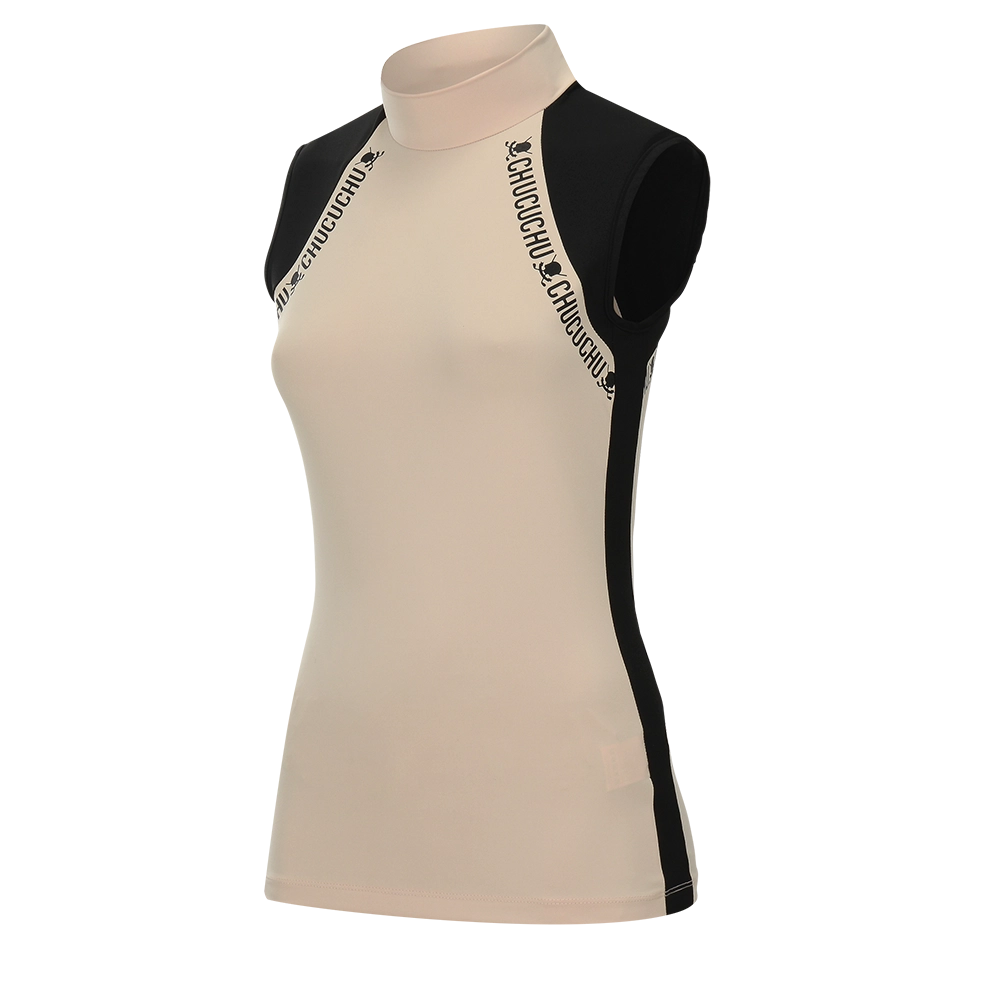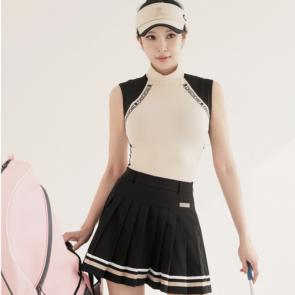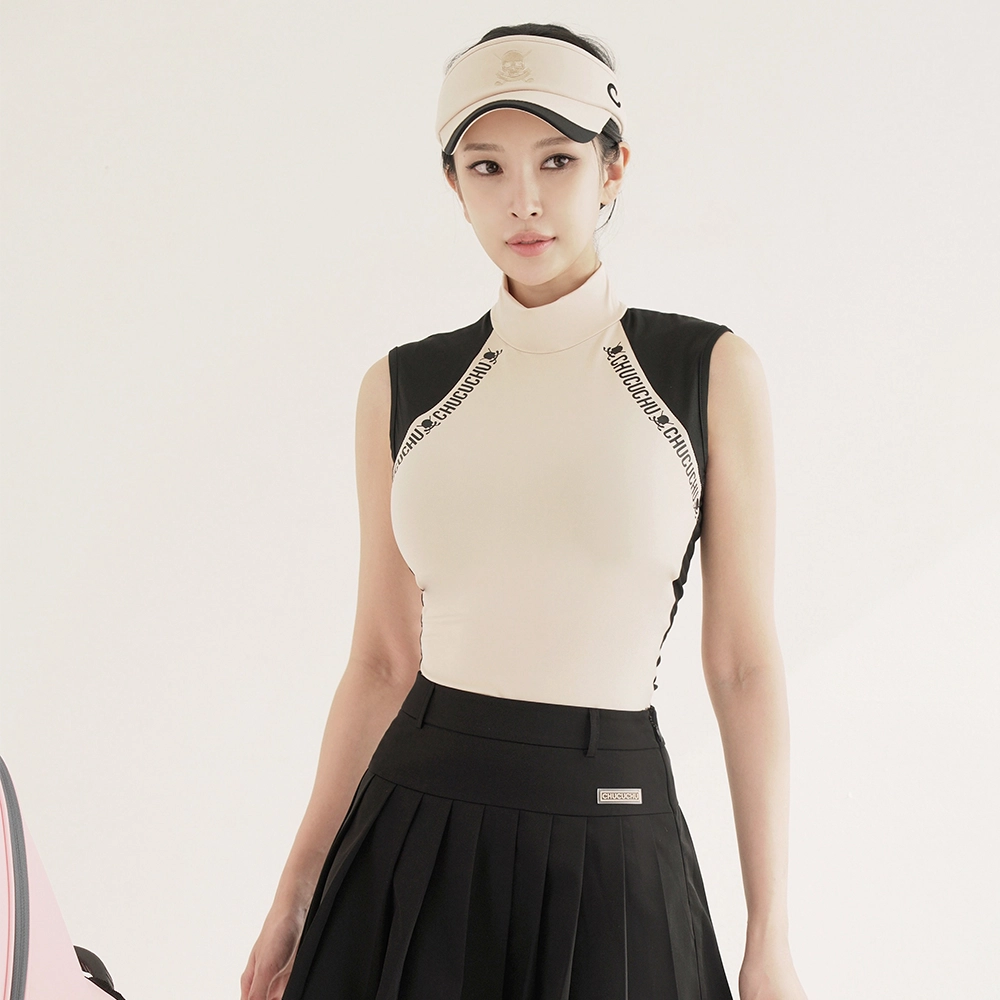Side color panels create a streamlined waist effect, while the loose-fit half-neck adds a natural, relaxed shape. Built from high-quality CHUCUCHU-selected fabrics, this sleeveless top provides stretch, breathability, and comfort through every swing.