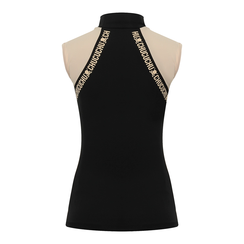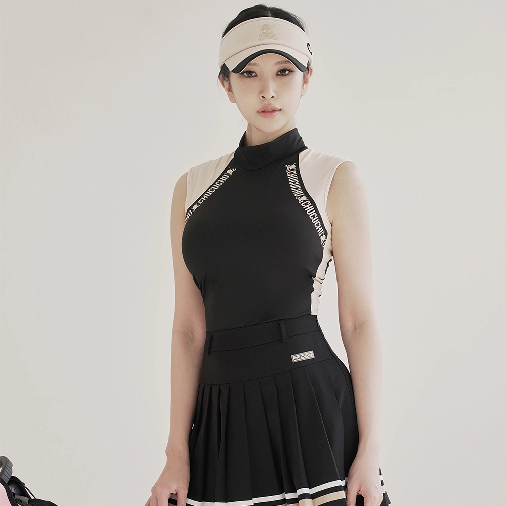 Side color panels create a streamlined waist effect, while the loose-fit half-neck adds a natural, relaxed shape. Built from high-quality CHUCUCHU-selected fabrics, this sleeveless top provides stretch, breathability, and comfort through every swing.