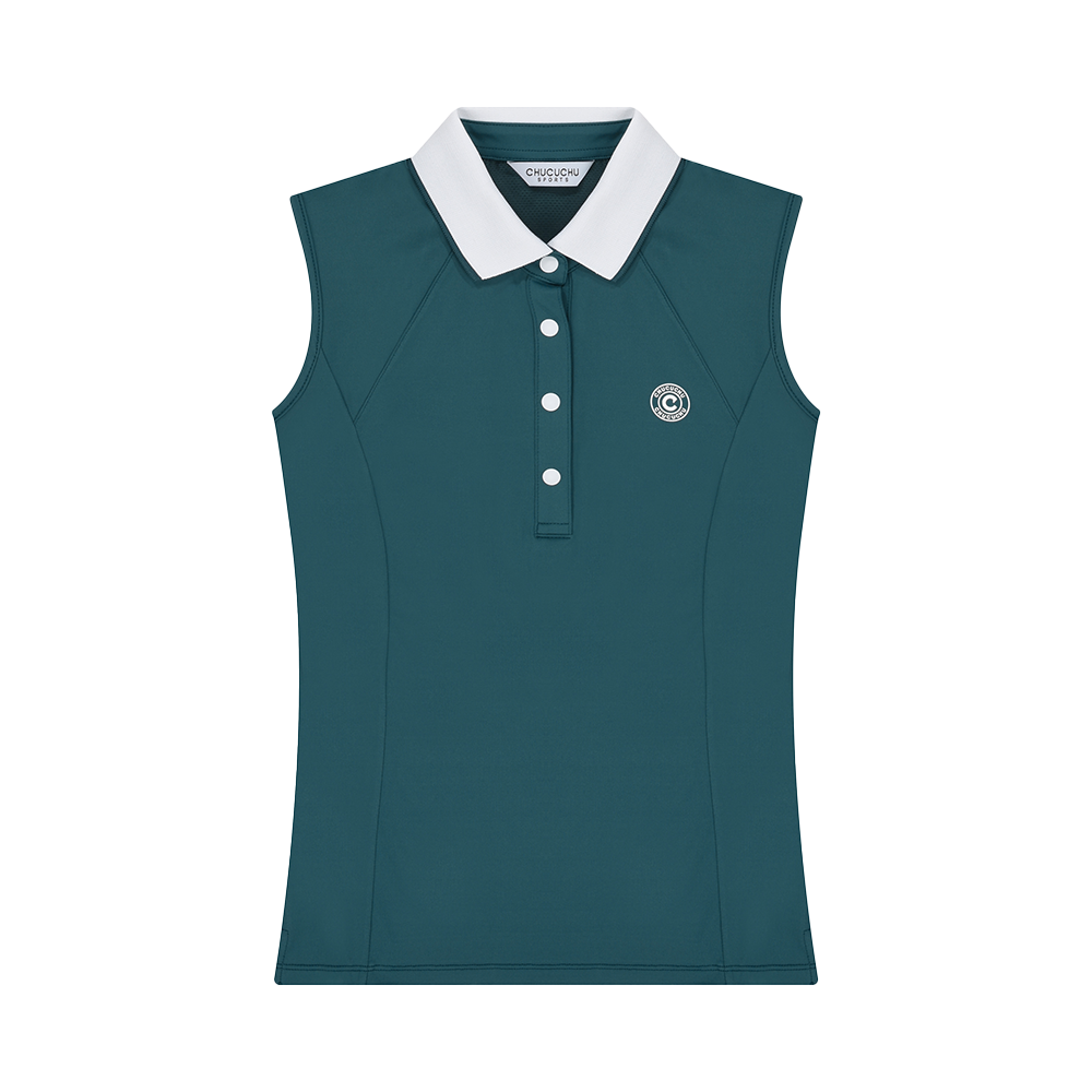 The Knit Collar Sleeveless Top delivers a sharp K-golf aesthetic with a knit-style collar and a slim, tailored fit. Detailed with four contrasting buttons at the neckline, it adds a crisp design point that elevates the look.
