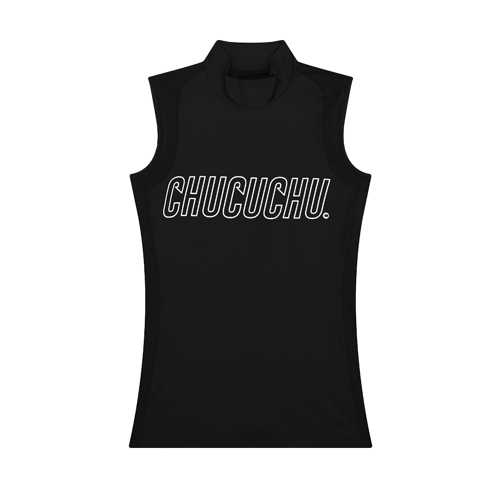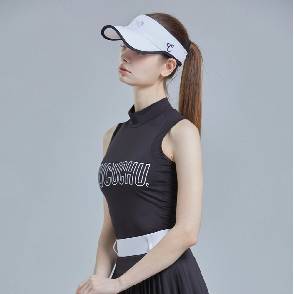 The Logo Mock Neck Mesh Sleeveless Top delivers a sleek K-golf aesthetic with its clean mock neck silhouette and signature branding. A bold front logo point makes a strong impression, while a printed logo on the back completes the look with balance.