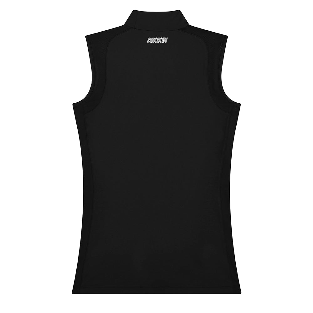 LOGO MOCK NECK MESH SLEEVELESS TOP BLACK
