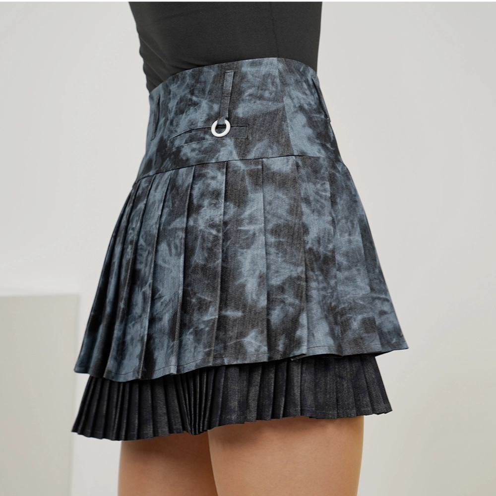 The Marble Double Pleated Skirt brings movement and style to the course with a tonal marble pattern and layered pleats. The lower pleats feature a darker shade, adding depth and visual impact for a bold, performance-ready look.