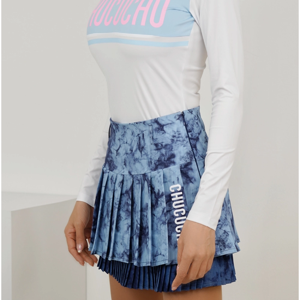 The Marble Double Pleated Skirt brings movement and style to the course with a tonal marble pattern and layered pleats. The lower pleats feature a darker shade, adding depth and visual impact for a bold, performance-ready look.