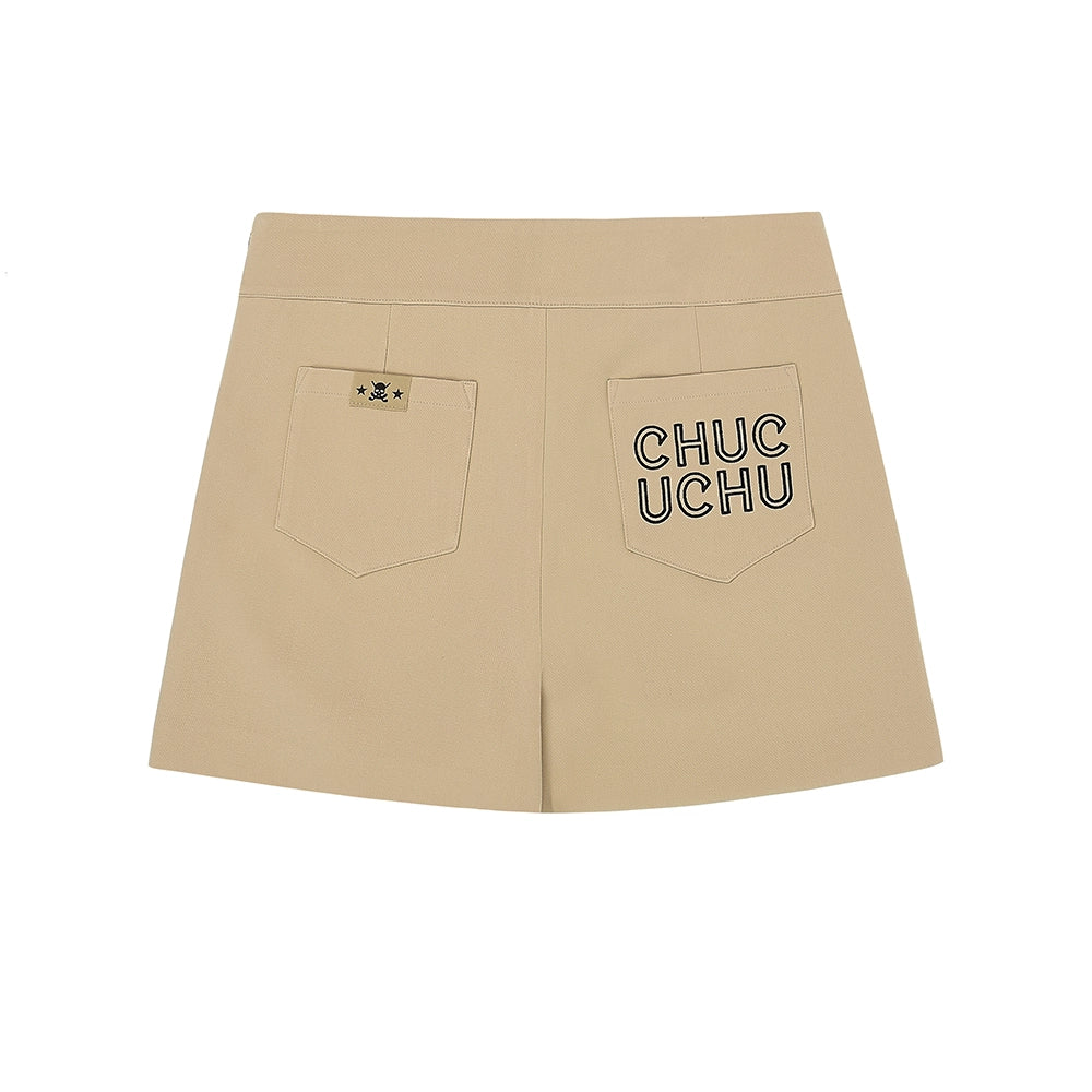 The inner pants can also be worn on their own, featuring a back pocket with the CHUCUCHU logo for a sporty edge. The skirt secures with a button closure and an elasticized waistband for comfort, while the pants include a side zipper for a streamlined fit. An O-ring detail on the front adds utility for simple accessory storage. Made from high-quality fabrics selected by CHUCUCHU, this skort keeps you comfortable and ready to perform.