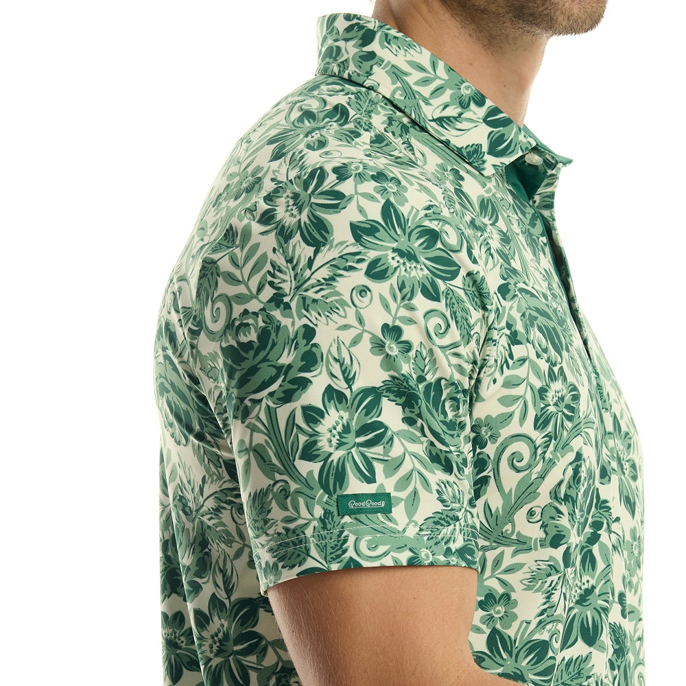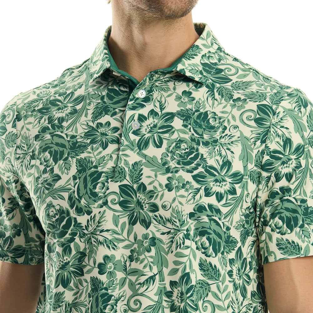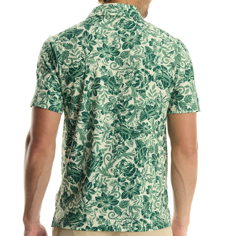 The Throwback Polo serves up retro flair with a bold, floral print that feels like it’s straight from a vintage postcard, only this time, it’s performance-ready. Lightweight, breathable, and designed with four-way stretch, it’s built for effortless movement, all-day comfort, and serious heat control. Whether you’re chasing birdies or just chasing the sun, this polo’s got your back.