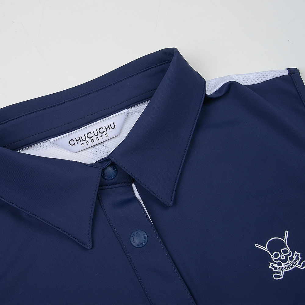 The brand’s signature skull logo adds a confident edge at the chest, while a sporty color-blocked back makes a striking statement. Breathable mesh panels from the back of the neck to the armhole ensure airflow and comfort through every swing, keeping you cool and confident all day long.